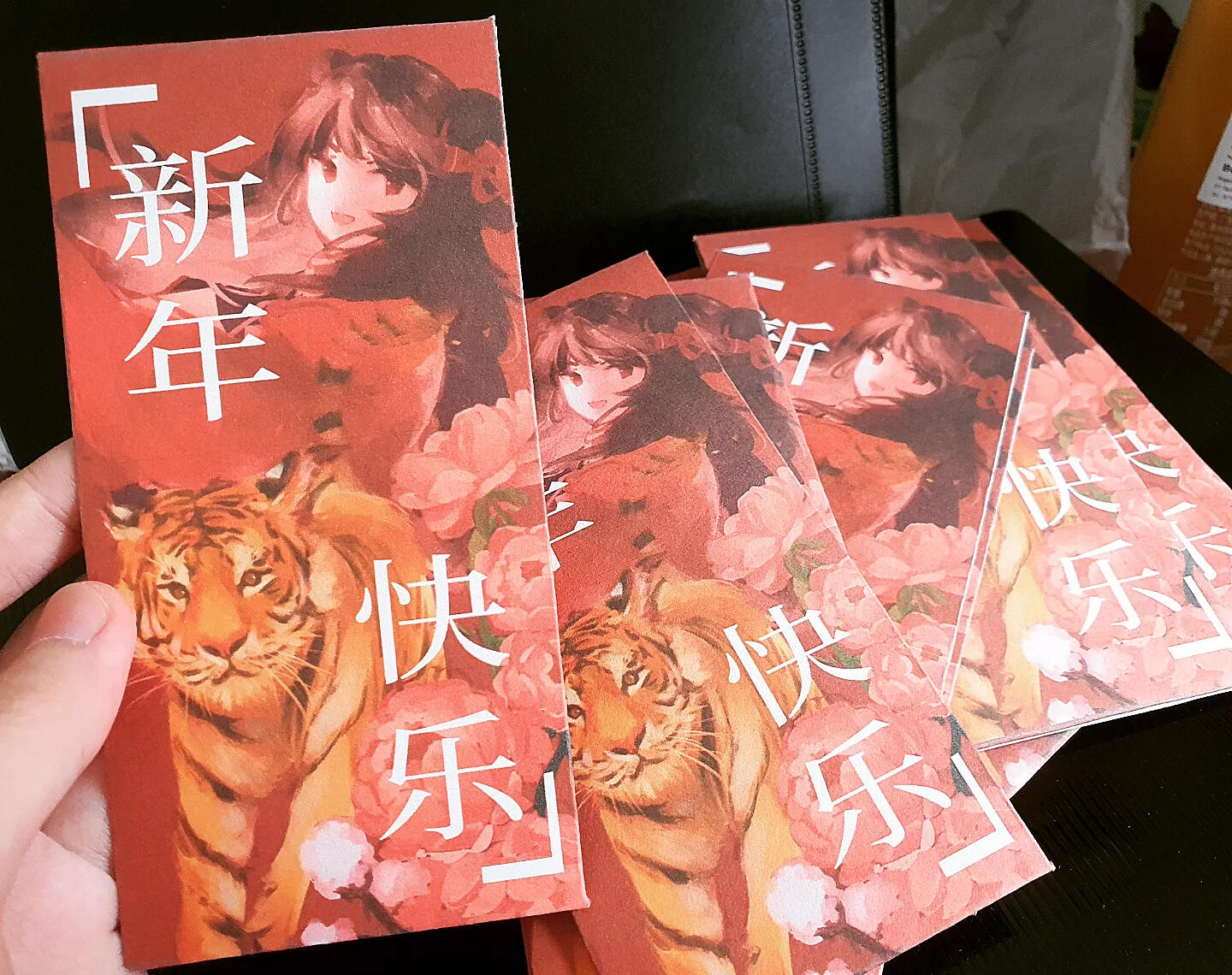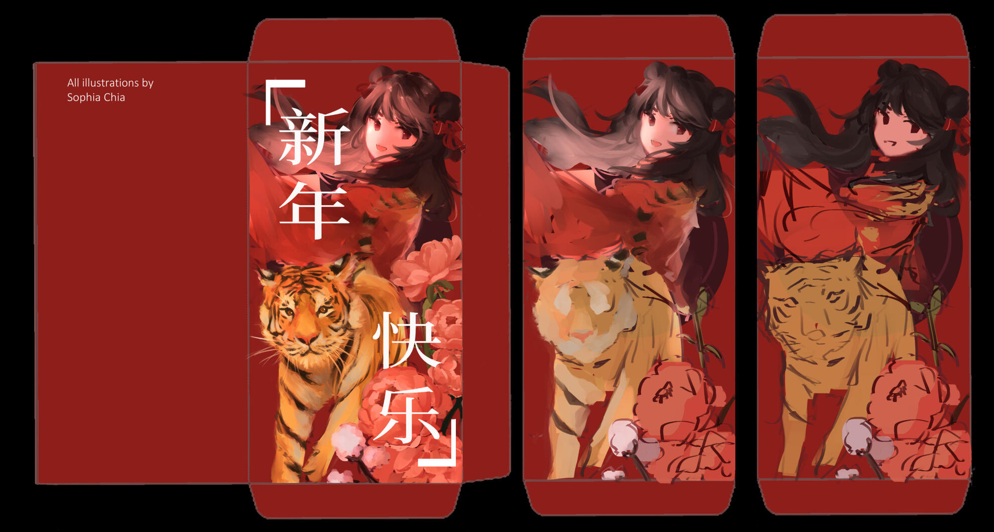 1st February 22, Red packets designed and printed out for the year of the tiger.