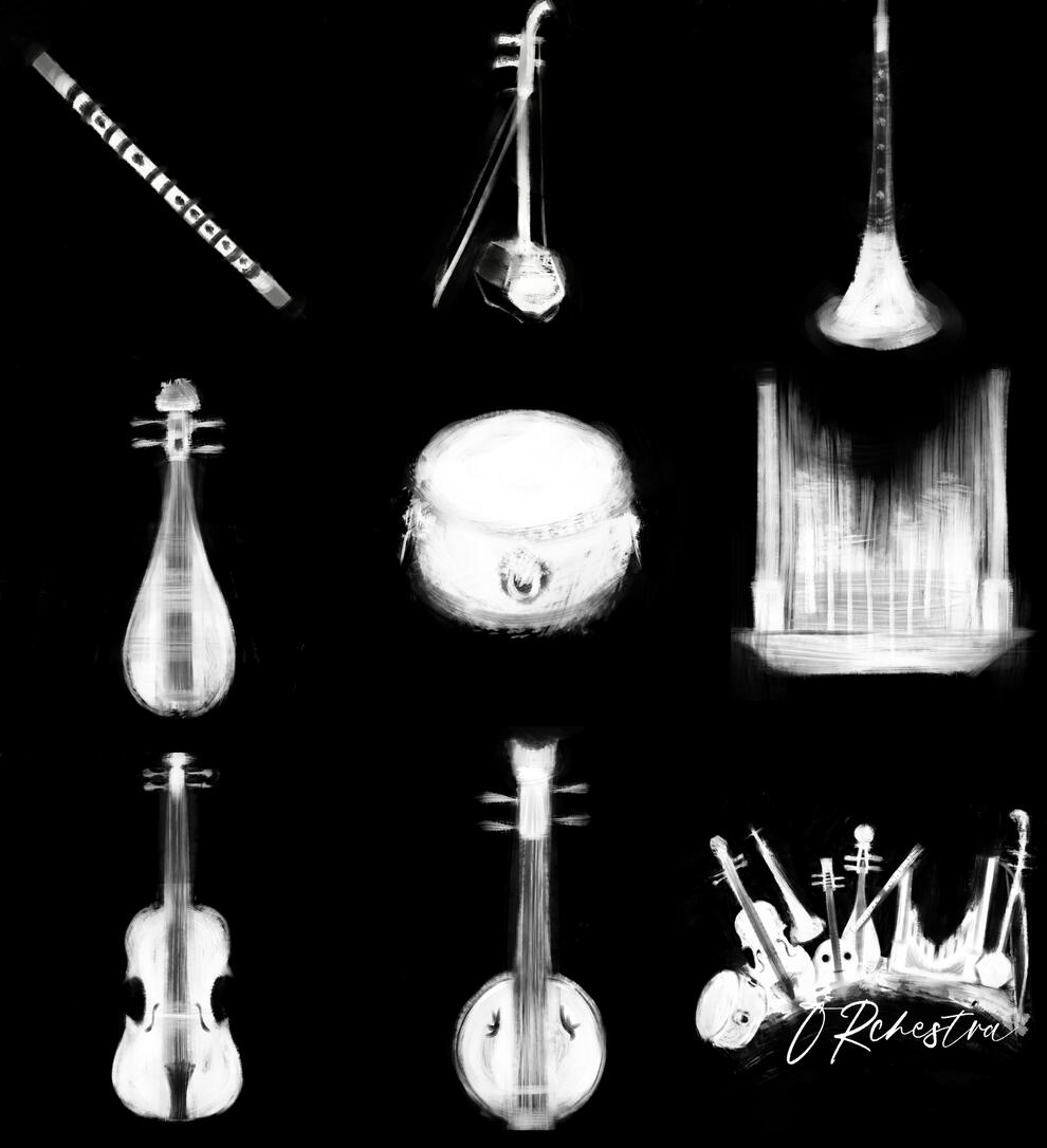 26th August 21This is a design originally made to be printed on a windbreaker for members of my school's Orchestra CCA. However, due to a lack of budget it has been scrapped.But even so, I decided to put these designs I've made in this portfolio.Each 'instrument' logo was to be printed on front of the windbreakers of members who played the respective instruments.While the large collective Orchestra Logo was meant to be printed at the back of all members' windbreakers.The instruments included are Dagu, Dizi, Suona, Daruan, Cello, ZhongYingShen. I tried to go for a painterly-texture for this design, to give rise to a relatively more traditional feel.